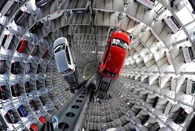 這里的機械會把已經(jīng)完成的車子送到大眾汽車中心的塔里,并替來領(lǐng)車的新主人們把車子運出來