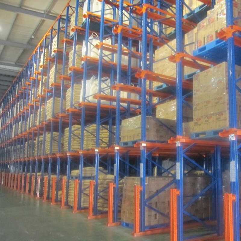 通廊式貨架又稱為駛?cè)胧截浖芑蜇炌ㄊ截浖?。是一種不以通道分割的、連續(xù)性的整棟式貨架,在支撐導(dǎo)軌上,托盤按深度方向存放,一個(gè)緊接著一個(gè),這使得高密度存儲(chǔ)成為可能。