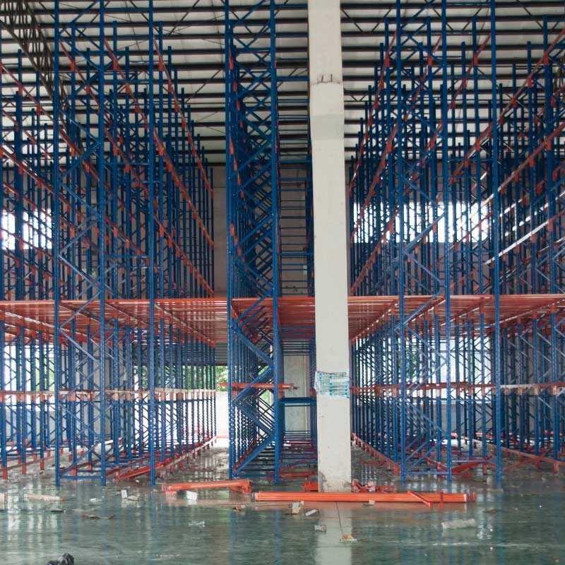 5、橫梁式貨架可有效的提高倉庫存儲(chǔ)高度,提高倉庫的空間使用率。適合各類型貨品存放。