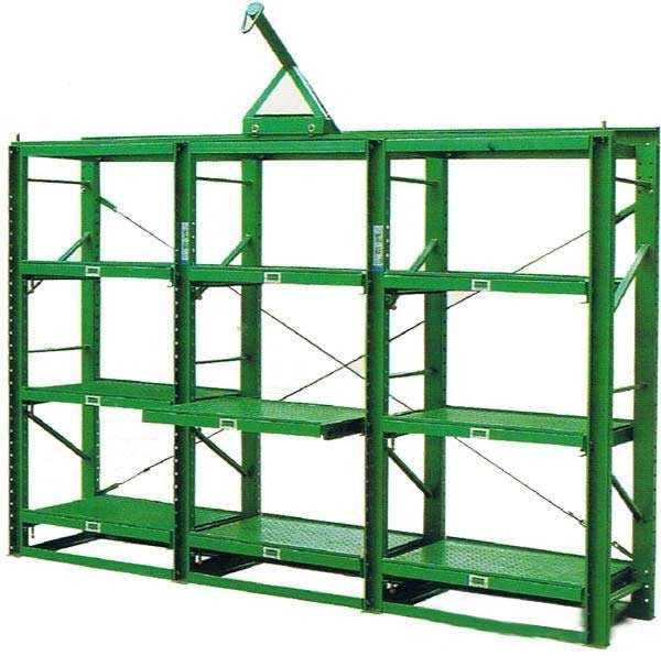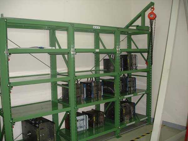 模具貨架又稱 模具架或 抽屜式貨架,主要存放各種模具物品,根據(jù)層載能力要求分為輕型模具貨架和重型模具貨架。貨架頂部可配置移動葫蘆車,以方便模具的起吊。