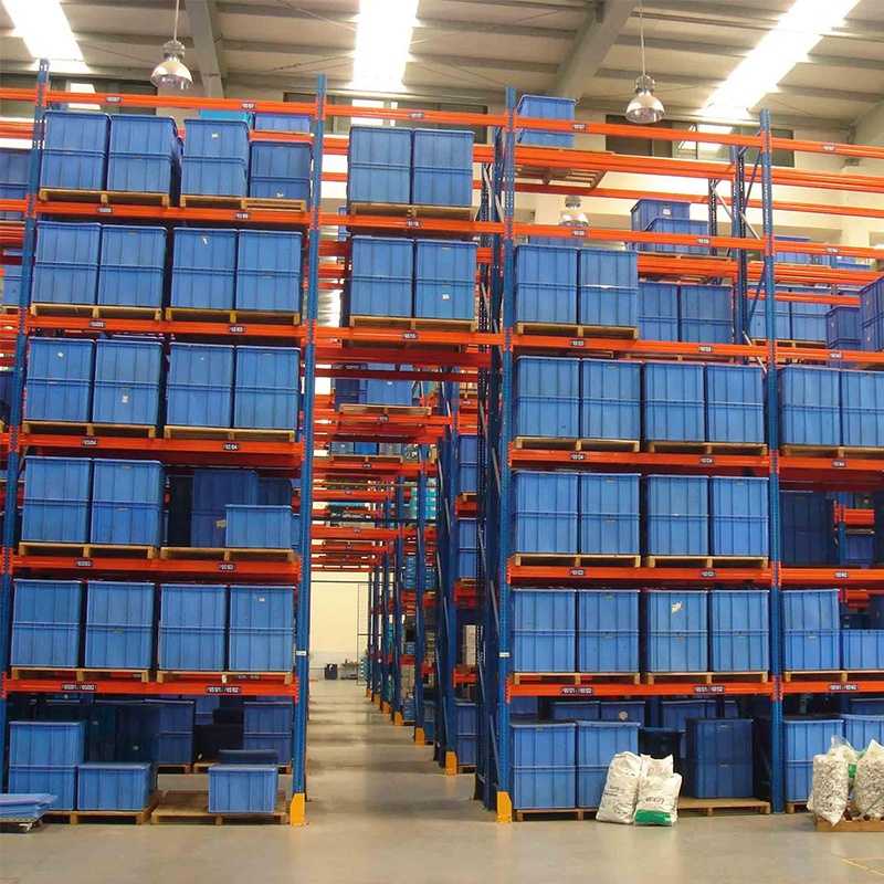 托盤貨架以儲存單元化托盤貨物,配以巷道式堆垛機及其他儲運機械進行作業(yè)。