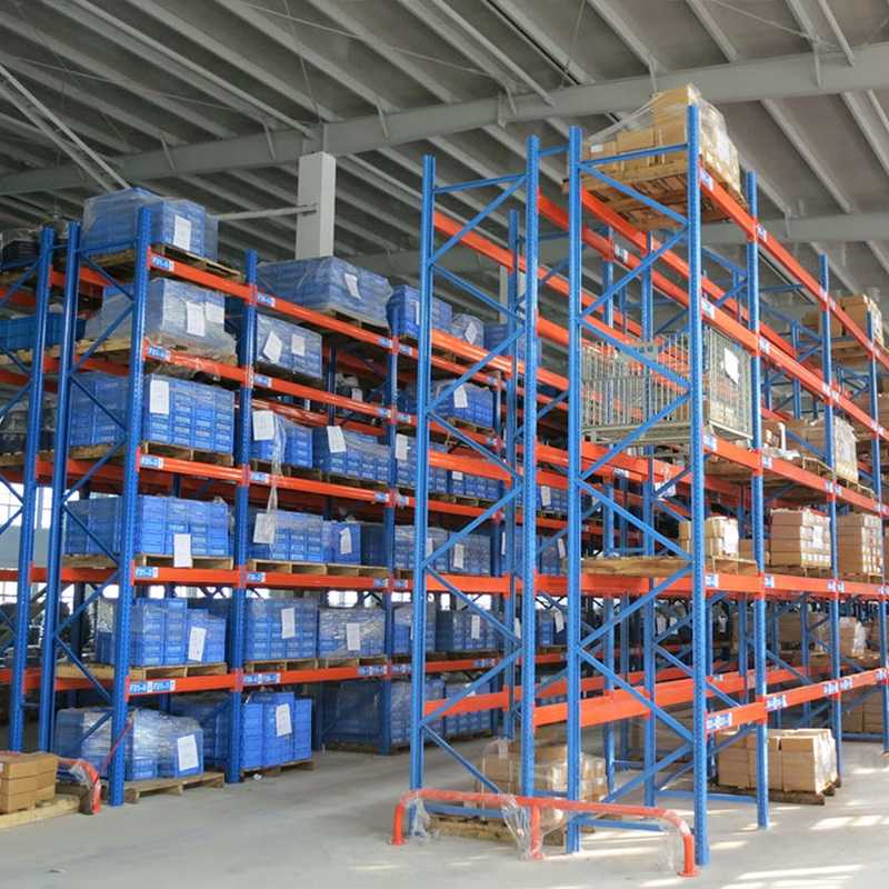 托盤貨架以儲(chǔ)存單元化托盤貨物,配以巷道式堆垛機(jī)及其他儲(chǔ)運(yùn)機(jī)械進(jìn)行作業(yè)。