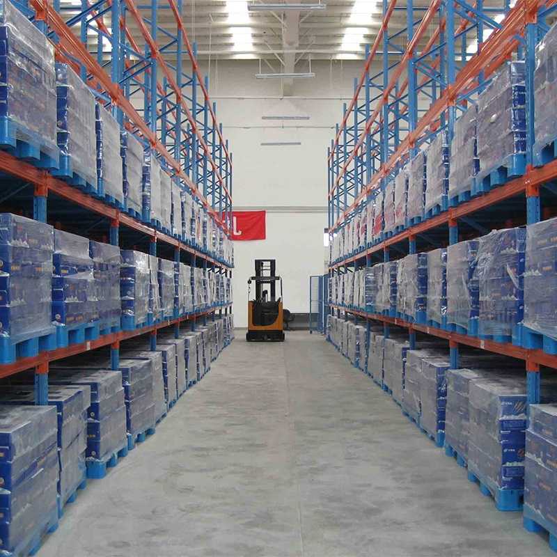 托盤貨架分成 駛?cè)胧酵斜P貨架 以及 重力式托盤貨架