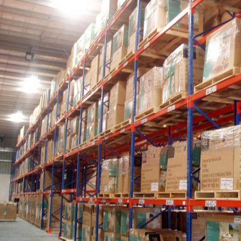托盤貨架以儲存單元化托盤貨物,配以巷道式堆垛機及其他儲運機械進行作業(yè)。