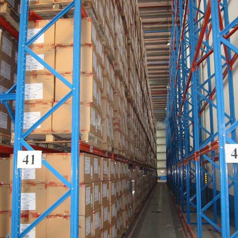 托盤貨架以儲存單元化托盤貨物,配以巷道式堆垛機及其他儲運機械進行作業(yè)。