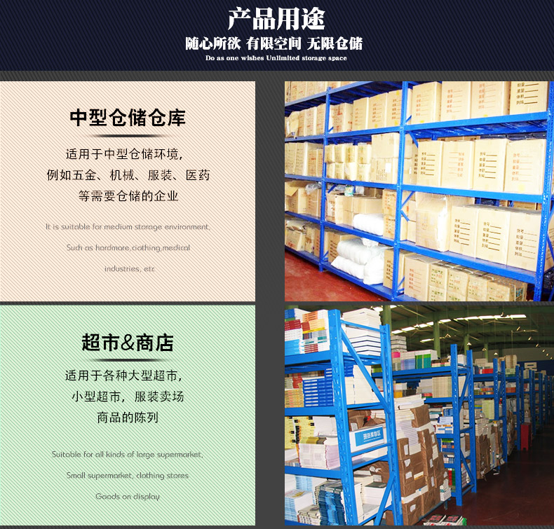 中型貨架可根據客戶需求尺寸訂做。