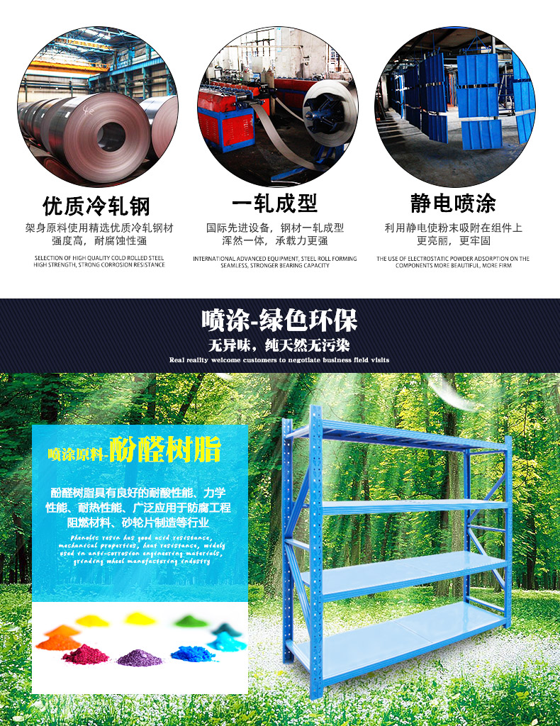 中型貨架標準型外形美觀,適用面廣、安裝拆卸方便、75mm節(jié)距調節(jié)、承載在100 KG~350 KG; 非標型大跨度大承載,75mm節(jié)距調節(jié)外觀新穎,承載在300 KG ~ 1000 KG。中型貨架堅固結實,承載力大,中型貨架廣泛應用于商場、超市、企業(yè)倉庫及事業(yè)單位。通常分為中量A型貨架、中量B型貨架和中量C型貨架。一般都可以拆裝組合,層板高度可以調節(jié);承重量層承重200-800公斤;貨架所有金屬件全部經過防銹處理,外表經靜電噴涂;中型貨架適用于大中小型倉庫存放貨物。在實際應用中分中A型貨架和中B型貨架。