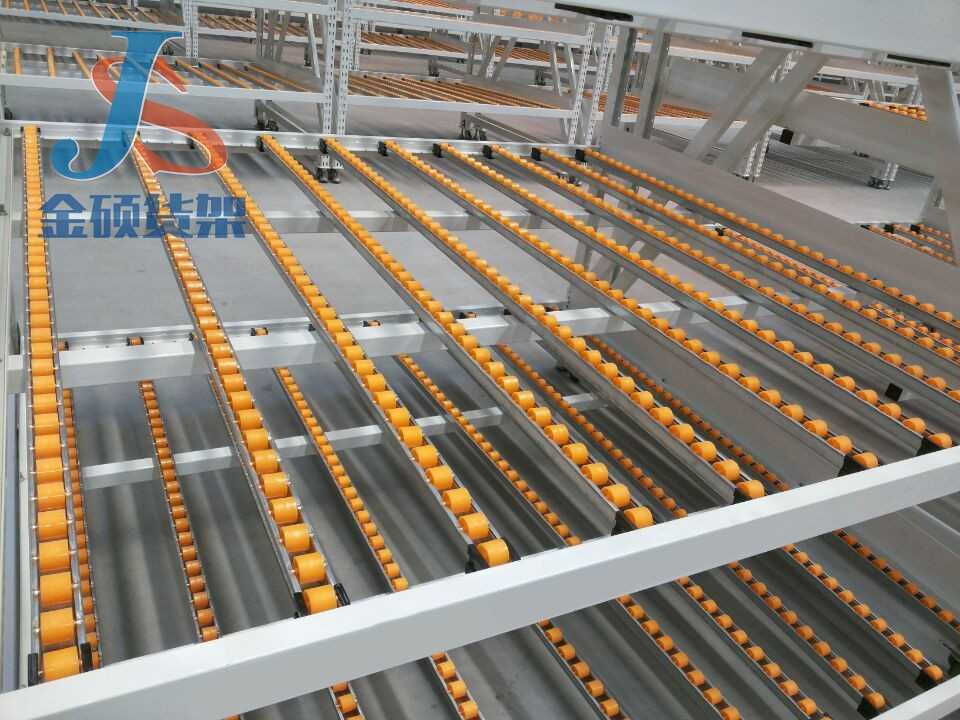 1、采用滾輪式鋁合金等流力條,利用貨物自重實(shí)現(xiàn)貨的先進(jìn)先出。