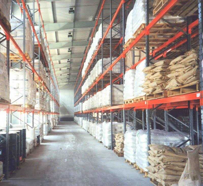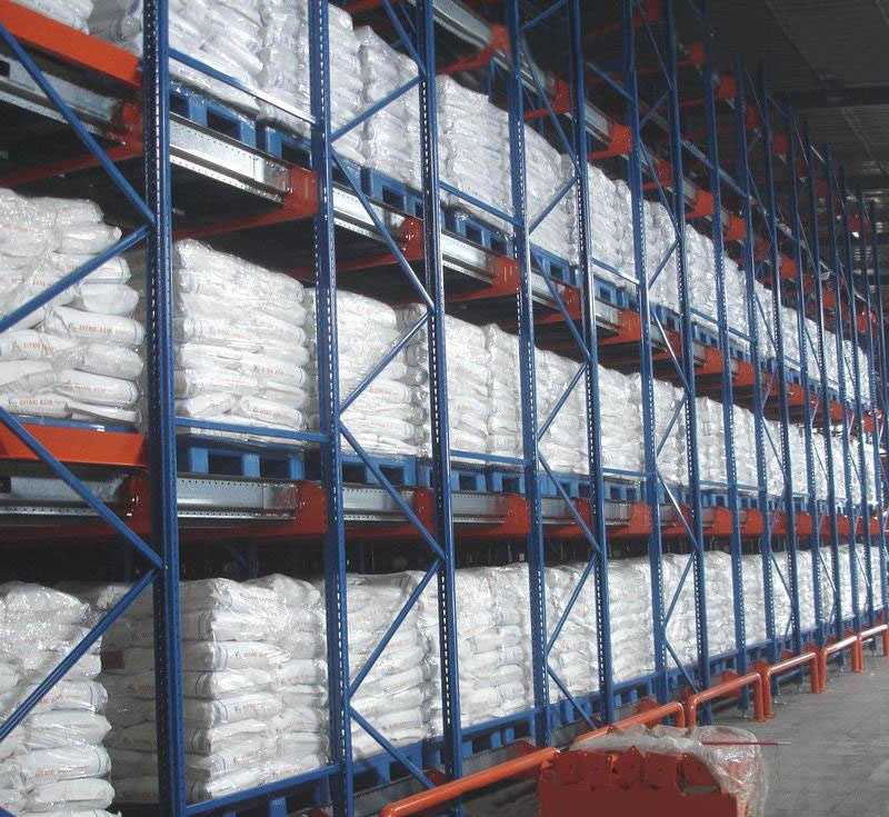 化工貨架采用托盤存取模式,適用于品種少,批量大類型的貨物儲存?;へ浖艹丝拷ǖ赖呢浳?,由于叉車需要進(jìn)入貨架內(nèi)部存取貨物,通常單面取貨建議不超過7個(gè)貨位深度。為提高叉車運(yùn)行速度,可根據(jù)實(shí)際需要選擇配置導(dǎo)向軌道,與貨位式貨架相比,化工貨架的庫空間利用率可提高30%以上。